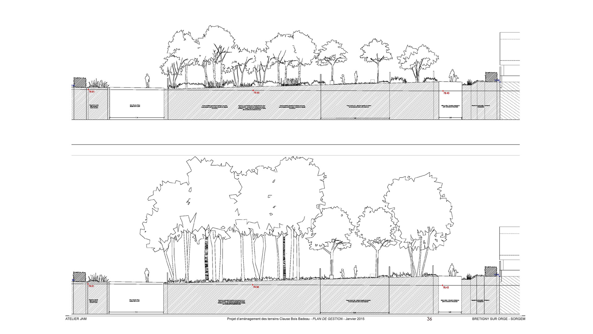 Dans la continuité du travail de conception des espaces et de maîtrise d’œuvre avec suivi des chantiers de réalisation, un plan de gestion pluriannuel a été réalisé pour que les services de la ville prennent la mesure des différentes typologies végétales mises en œuvre, et soient en mesure de se les approprier et de les accompagner pour qu’elles remplissent leur rôle spatial, écologique, typologique, et productif.