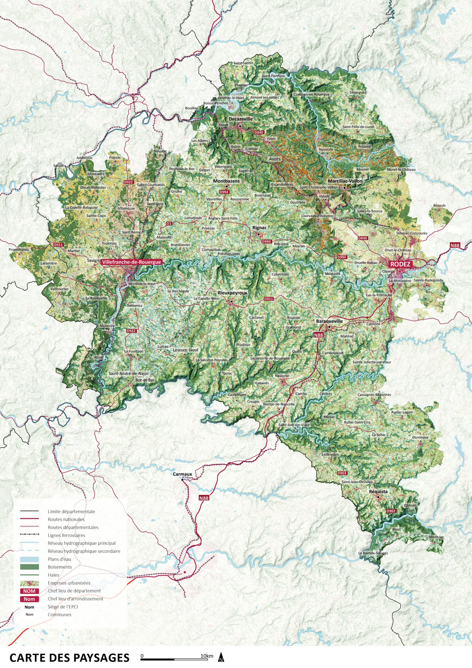 Mission : Le territoire d’étude du Plan de Paysage couvre le périmètre du PETR, qui comprend 123 communes et 9 EPCI (8 communautés de communes et 1 communauté d’agglomération). Très rural, il abrite seulement trois grandes unités urbaines : Rodez, à l’est, préfecture du département, Villefranche-de-Rouergue à l’ouest et Decazeville au nord. Le Plan de Paysage s’inscrit dans un ensemble de démarches et d’actions stratégiques menées par le PETR, certaines en partenariat avec le CAUE, qui a engagé un travail important depuis 2017 de création et de compilation de connaissances concernant les paysages du territoire. Ce matériau de grande qualité est intégré dans le diagnostic du Plan de Paysage. La démarche a pour objectif d’alimenter le SCoT, porté par le PETR, en s’appuyant sur des réflexions, une stratégie et des projets co-construits avec tous les acteurs de la démarche : élus, techniciens, acteurs socio-économiques, associations..